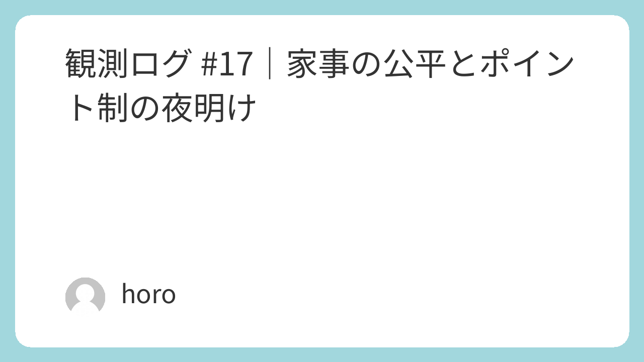この反省から、俺が提案したのが 「ポイント制」。家事ごとにポイントを設定し、できなかった家事や代わりにやった家事をポイントで調整する仕組み。