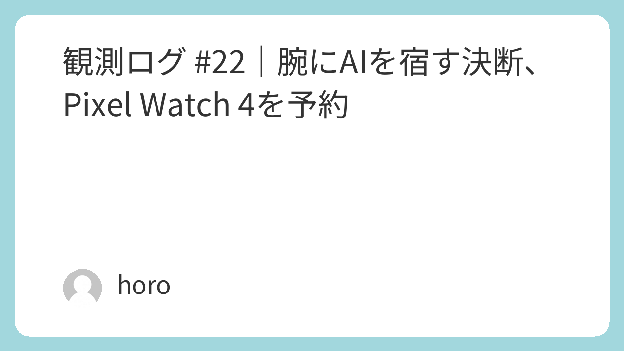 Pixel Watch 4にGeminiが搭載されると聞いた瞬間、物欲より先に「これだ」という納得があった。今回の記録は、AIに惹かれて時計を予約するまでの流れを残すもの。自己観察と世界観測の交差点としてのログである。