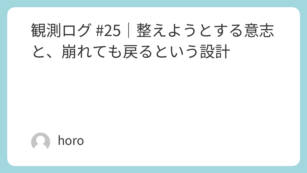 僕にとっての整えるとは、“壊れない仕組み”をつくることじゃなく、“壊れても戻れる構造”を持つことなのかもしれない。