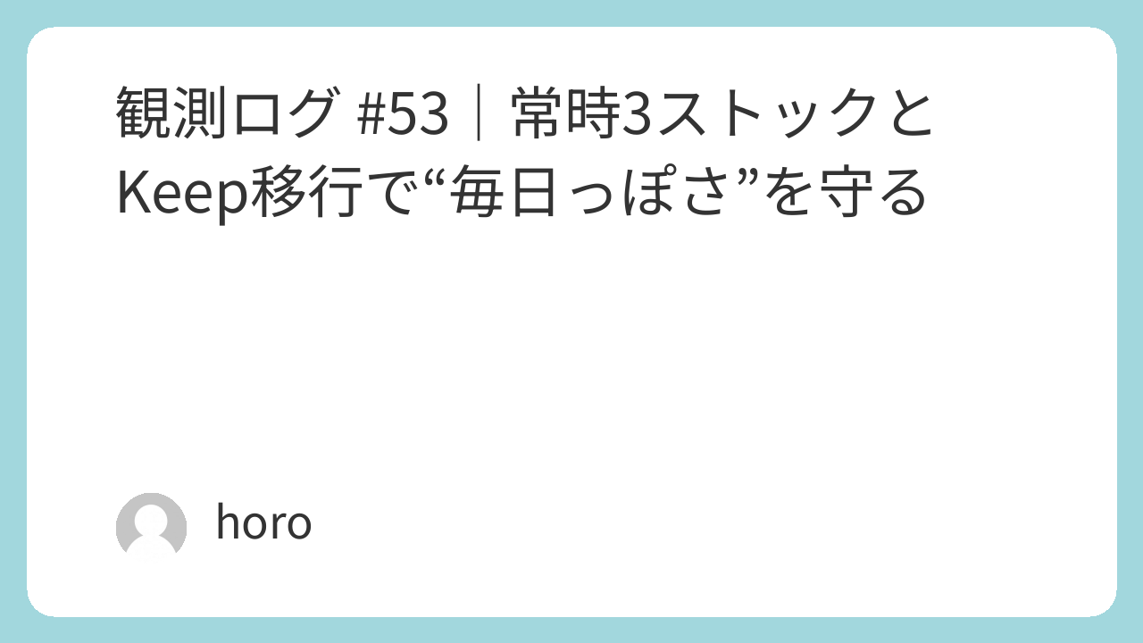 観測ログ #53|常時3ストックとKeep移行で“毎日っぽさ”を守る