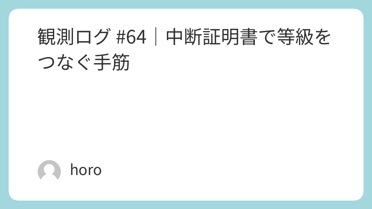 観測ログ #64|中断証明書で等級をつなぐ手筋