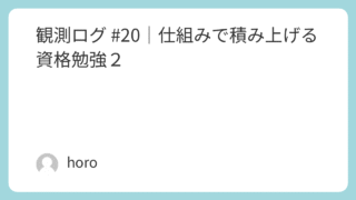 日々のこと 観測ログ #20|仕組みで積み上げる資格勉強2 8月20日この数週間、資格勉強をどうやって継続するかをテーマにして試行錯誤してきた。自分の集中力や意欲は日によって波があるし、ちょっとした生活の変化で勉強リズムは簡単に崩れる。前編では「実績を残すこと」を重視して、勉強のログをJourney... 2025.08.25 日々のこと自己研鑽のこと