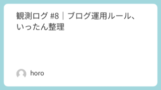 ブログのこと 観測ログ #8|ブログ運用ルール、いったん整理 8月8日(まえがき)ここらで一度ルールとスタイルを整理。テンプレ運用が自分には合ってるとわかってきた。やること明確にすると、時間かけずに書ける。書きながら試行錯誤は続くけど、最低限の軸を決めておくと迷わなくなる。■今後のブログ運営メモ・運用... 2025.08.10 ブログのこと